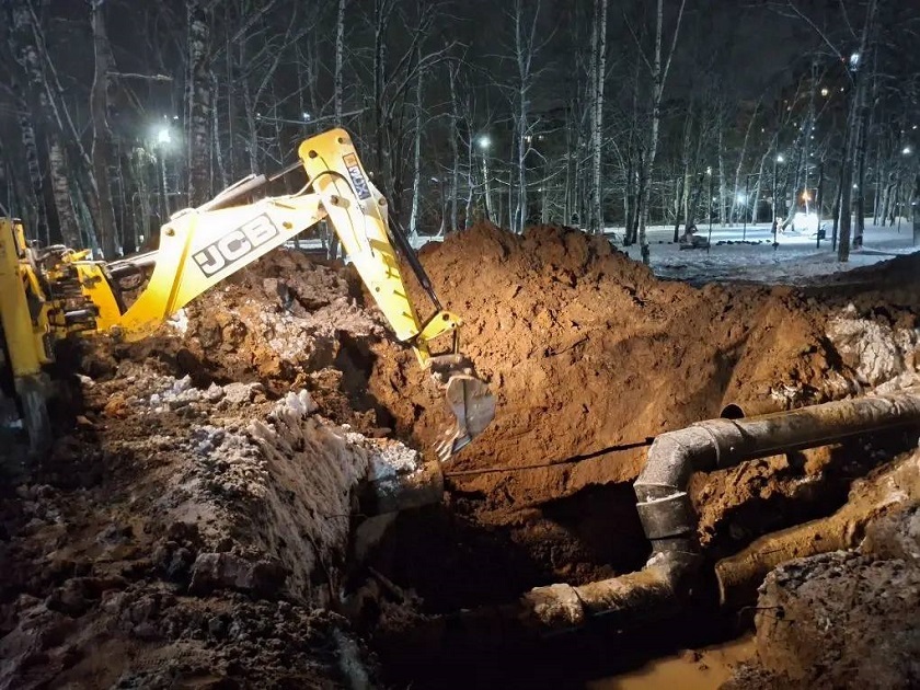 Около полуночи был демонтирован участок трубопровода, который мешал доступу к месту прорыва. В это же время были начаты работы по замене аварийного участка исправным.