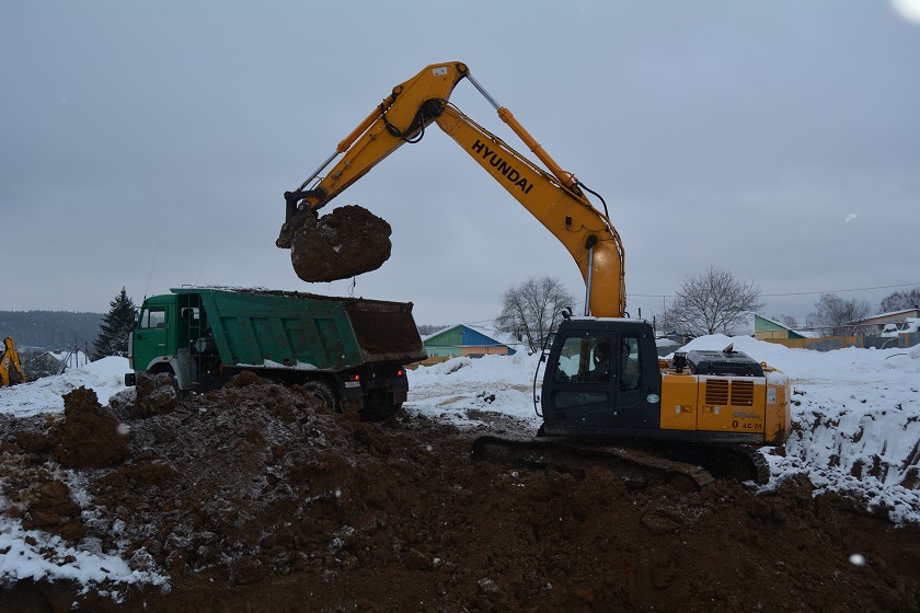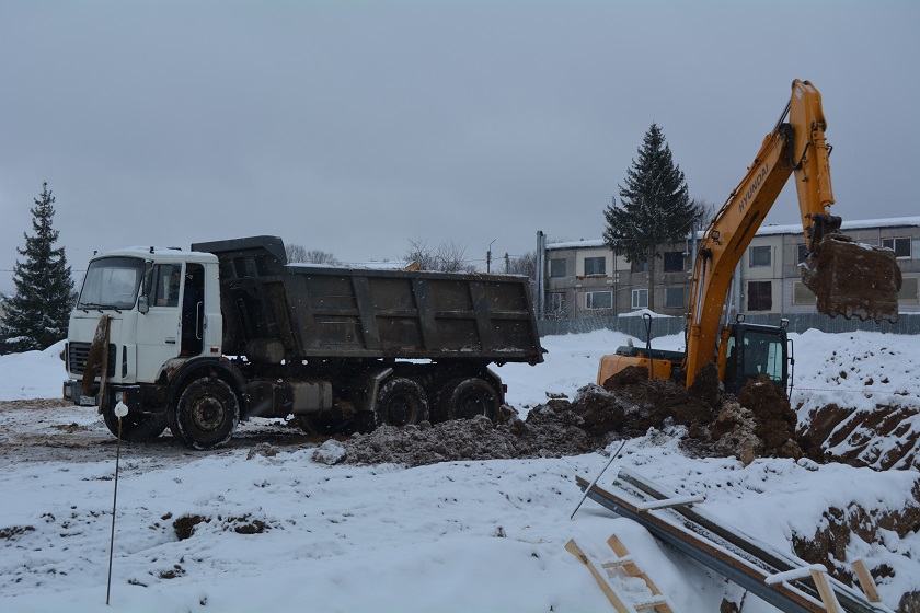 Возведение здания осуществляет московская фирма «СМР 1015». Три котлована размером 20Х50 метров уже практически готовы. Одновременно рабочие занимаются и закладкой фундамента. На стройке задействовано 4 единицы техники.