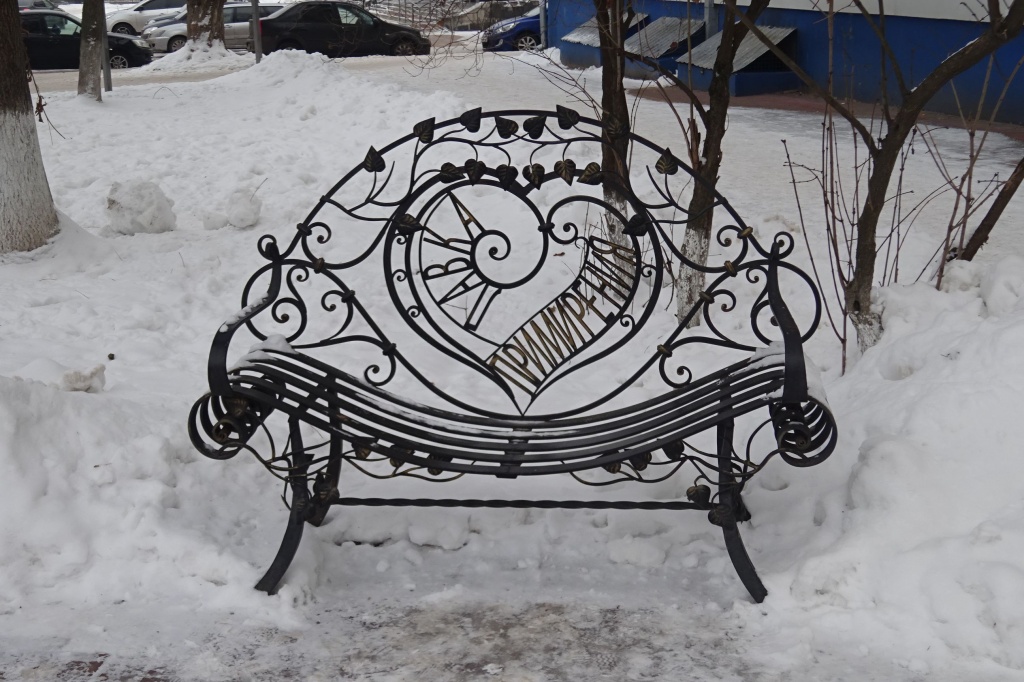 «Лавка примирения» - кованая скамейка у здания городского управления ЗАГС - появилась в 2012 году. На ней могут расположиться только двое, а благодаря гладкому сиденью изогнутой формы люди «съезжают» в центр и садятся только бок о бок. Не случайным оказался и выбор места установки: если семейная пара приняла решение о разводе, то где, как не у стен