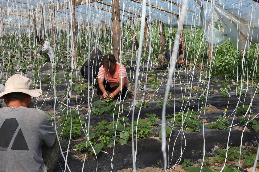 С наступлением жары теплицы открывают с боков. Но работать днем в них все-таки тяжело. Поэтому трудятся здесь практически с рассвета до 11-12 часов дня. Затем делают большой перерыв. И вновь выходят около пяти вечера и до первых сумерек.Хозяева обеспечивают работников горячим питанием. Кормят завтраком, затем обедом в перерыве и вечером ужином. Готовят здесь же. Все свежее, непривозное. Поваром работает супруга хозяина, она же следит и за бытом, а когда муж уезжает торговать, еще и за всем хозяйством.