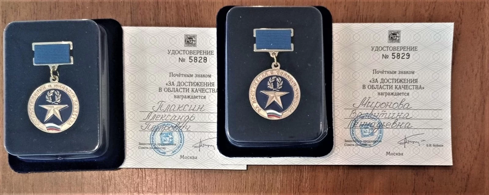 На торжественной церемонии также были вручены почетные знаки «Отличник качества». Среди удостоенных этой награды Александр Плаксин - заместитель генерального директора по качеству, руководитель службы АО «Калужский двигатель» и Валентина Миронова – генеральный директор «ООО «Полотняно Заводская бумажная мануфактура».