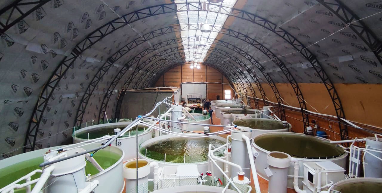 Так в обычном с виду ангаре появились огромные белоснежные емкости, наполненные водой. Со знанием дела Николай объяснил, что главное условие выращивания царской рыбы – это очистка воды по технологии УЗВ (устройства замкнутого водоснабжения). Суть ее в том, что вода в резервуарах с рыбой не меняется постоянно, а очищается при помощи фильтров и обогащается подаваемым кислородом. Это снижает расходы не только на саму воду, но и на ее подогрев, что очень важно в суровое зимнее время. Большое значение также имеют поддержание заданных параметров воды и воздуха в помещениях, кормление в строго определенное время. Соблюдение всех этих нюансов и позволило вырастить осетров уже до приличных размеров.В бассейне-питомнике созданы идеальные условия, чтобы мальки росли практически круглый год. Температура здесь поддерживается на уровне 20-22 градусов, соблюдается необходимый световой режим, в автоматическом режиме выделяется достаточное количество пищи.