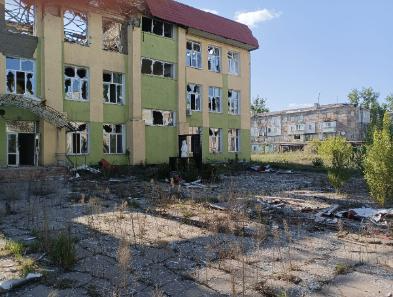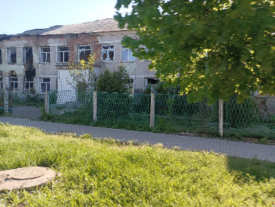 Неказистое кирпичное здание пострадало от близкого прилета: осколки повредили купол, стены, стеклопакет. Внутри теснота и запустение. Рядом заложенный еще при Украине недострой, тоже изрядно побитый.
