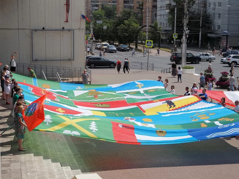Сегодня, 5 июля, Калужское региональное отделение партии «Единая Россия» совместно с рядом молодежных общественных организаций развернули возле кинотеатра «Центральный» флаг Калужской области.
