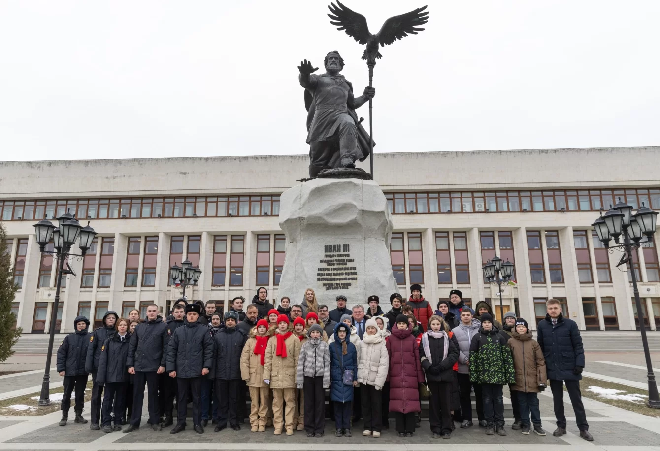 К монументу, символизирующему силу и мощь молодого российского государства, легли гвоздики и розы. Память Ивана III почтили министр внутренней политики региона Олег Калугин, его заместитель Ирина Федорова, директор Издательского дома «Калужские губернские ведомости» Юрий Расторгуев, главный редактор газеты «Калужская неделя», заместитель председателя Общественной палаты области Анри Амбарцумян и другие официальные лица.Молодое поколение калужан представляли активисты «Волонтерской роты», юнармейцы и ученики калужской школы № 18, студенты КГУ имени К.Э. Циолковского. Не все из них одинаково хорошо ориентируются в отечественной истории, но об Иване III и его заслугах ребята слышали. С этого и начинается приобщение к истории государства и родного края.