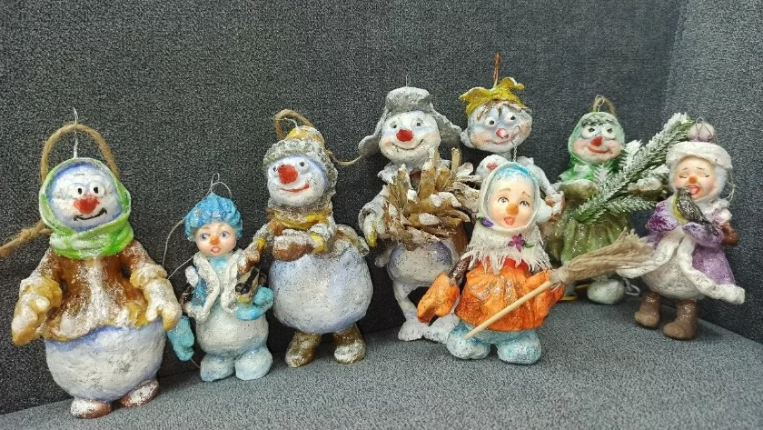 Мастерица освоила технологию изготовления игрушек из ваты год назад. За это временя она изготовила несколько сотен новогодних игрушек. Их рукодельница делает в подарок родным и друзьям. Автор работ вдохновляется старыми семейными фотографиями и своим воображением.