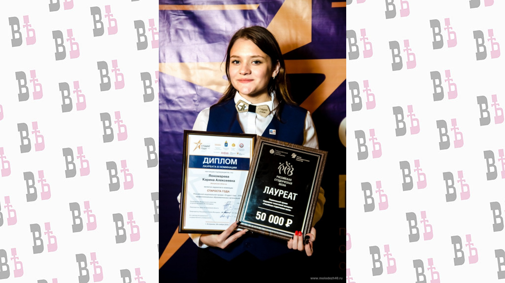 Карина Пономарева из Калужского колледжа народного хозяйства и природообустройства в ноябре стала лауреатом национальной премии «Студент года». Это первая национальная премия, учрежденная РСМ и министерством образования и науки РФ. Калужанка победила в номинации «Староста года».В VIII Всероссийском конкурсе МВД России «Народный участковый» по итогам голосования второе место занял старший участковый уполномоченный отдела МВД России по Боровскому району майор полиции Тимур Нурбагандов. За него было отдано почти 25 тысяч голосов. Министр внутренних дел РФ Владимир Колокольцев отметил народного выдвиженца медалью МВД России «За доблесть в службе».