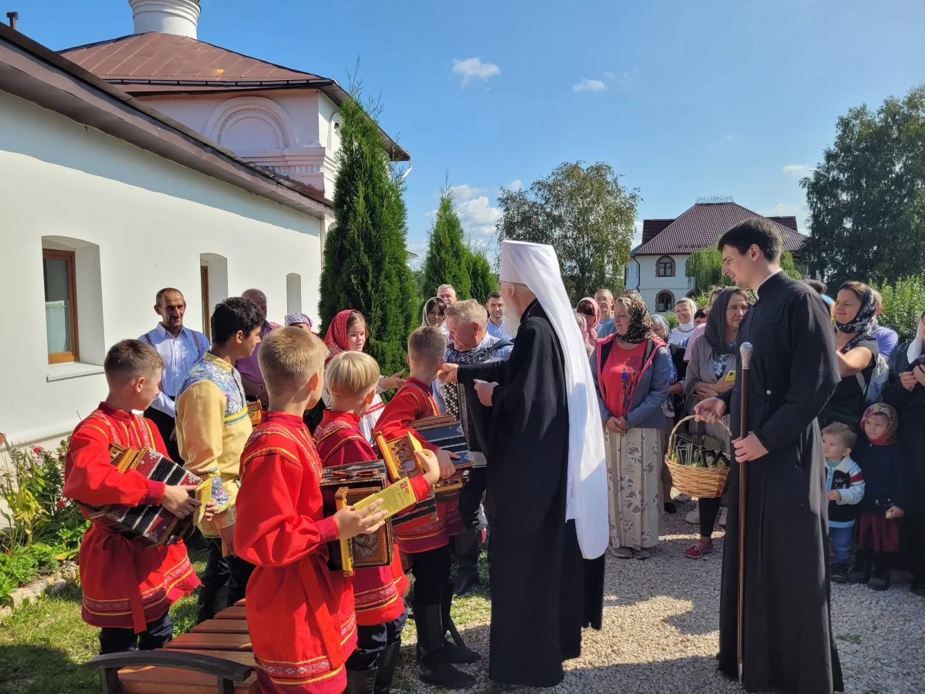 Среди почётных гостей на празднике присутствовали глава администрации Перемышльского района Надежда Бадеева и её заместитель Татьяна Спасова. Они привезли в дар монастырю картину с изображением Успенского храма и колокольни.