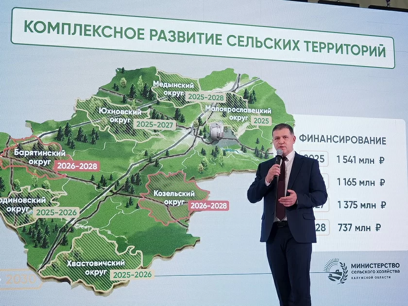 Особое внимание министр уделил подготовке кадров и созданию для комфортных условий жизни и работы на селе. В 2025 году началась реализация проектов комплексного развития пяти опорных населенных пунктов. Завершены два: капремонты сетей водоснабжения в Малоярославце и Дома культуры, детского сада, теплотрассы и ветеринарной станции в Хвастовичах. Итоги ещё трёх в Медыни, Людиново и Юхнове будут подведены в 2026 и 2027 годах. Продолжится работа и по программе «Комплексное развитие сельских территорий».