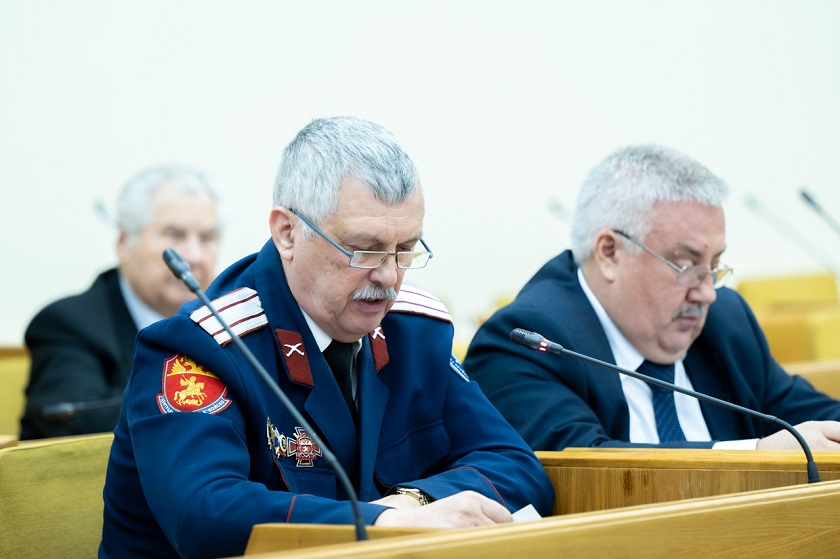 Атаман Калужского отдельского казачьего общества войскового казачьего общества «Центральное казачье войско» (Калужское ОКО ВКО «ЦКВ»), казачий полковник Борис Комиссаренко проинформировал о том, что на территории области проживает 714 казаков - участников казачьих обществ и иных объединений. В целях решения задач, определённых Стратегией государственной политики России в отношении российского казачества на 2021-2030 годы, министерством внутренней политики региона во взаимодействии с другими органами государственной власти, местного самоуправления и казачьими обществами реализуется комплекс плановых мероприятий по воспитанию подрастающего поколения в духе патриотизма, гражданской ответственности и готовности к служению Отечеству с опорой на духовно-нравственные ценности российского казачества, по поддержке развития военно-прикладных видов спорта в казачьих обществах, а также по обеспечению участия российского казачества в реализации государственной молодёжной политики.