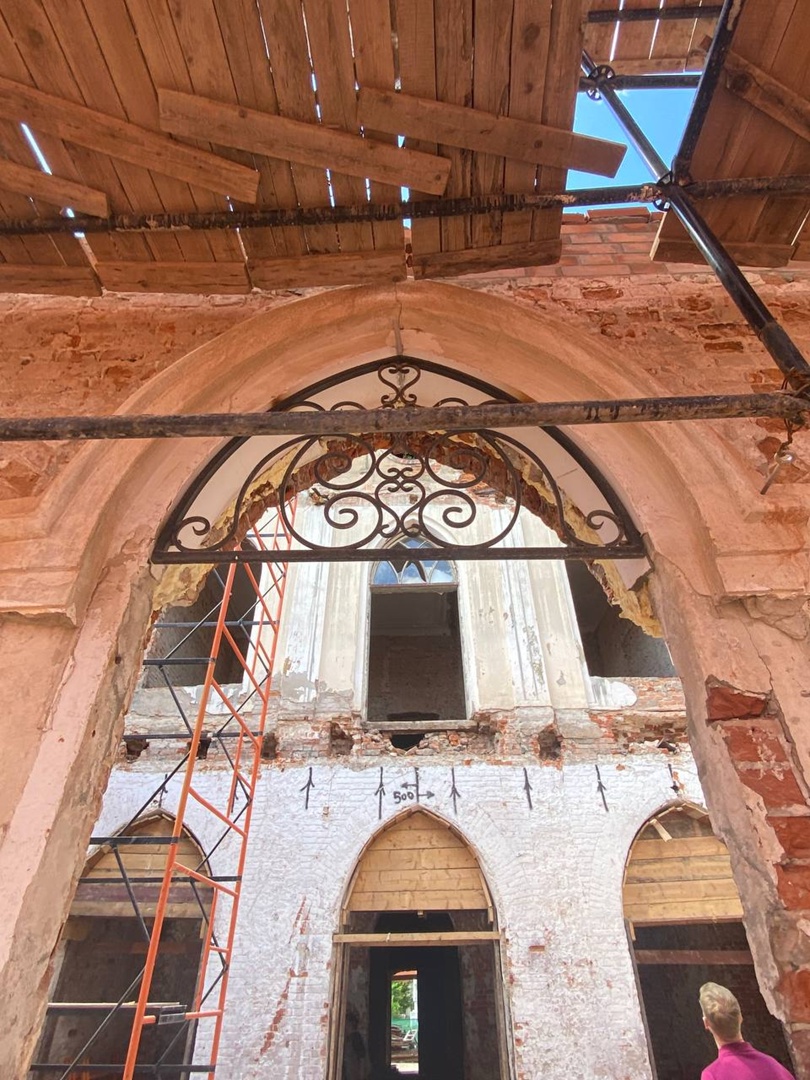 Реставрация готического дома в селе Авчурино Ферзиковского района Калужской области идет в соответствии с запланированными сроками.