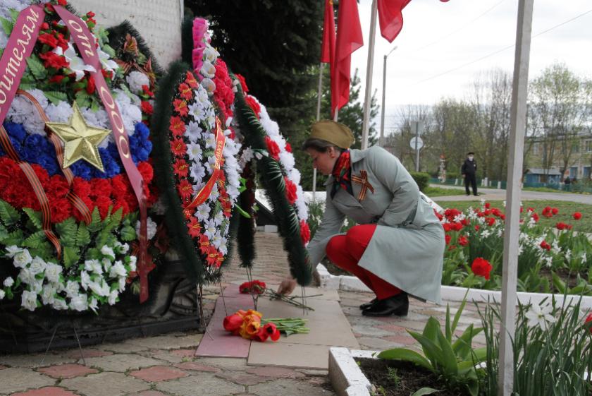 Цветы возложили на братском захоронении в посёлке Барятино, а так же цветы были возложены к подножию памятника дегонским комсомольцам-подпольщикам.