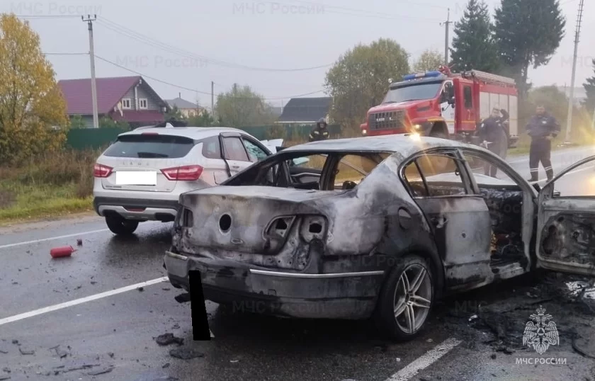 Как сообщают в региональном управлении МЧС, произошло столкновение двух легковых автомобилей марок «Лада Веста» и «Фольксваген Пассат». В результате происшествия в «Фольксваген» произошло возгорание. По фото видно, что транспортное средство сгорело полностью. Также сообщается о пострадавших, но их состояние не уточняется.