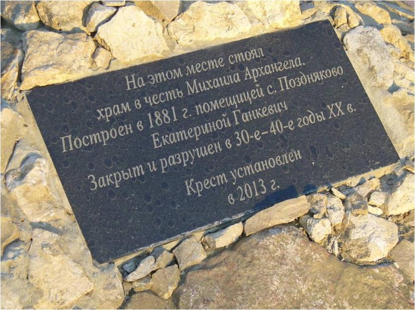 Несколько лет назад было решено увековечить память о разрушенной Архангельской церкви, установить поклонный крест и памятную плиту.