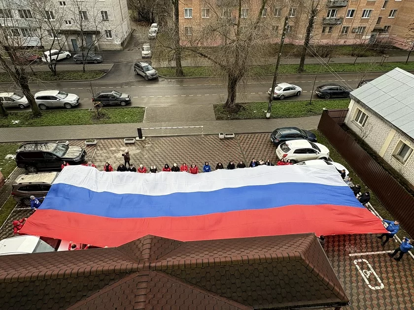 В День Конституции в Калуге развернули 50-метровый триколор