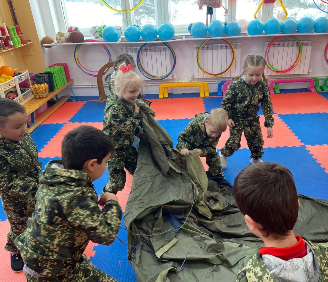 Недавно юнармейцы в занимательной формеобучали дошколят навыкам походной жизни. Маленькие «туристы» учились ставить и собирать палатку, пользоваться рациями, познакомились с разными видами костров и туристического снаряжения. Для малышей эта встреча стала веселым событием, полным полезных и  увлекательных открытий.