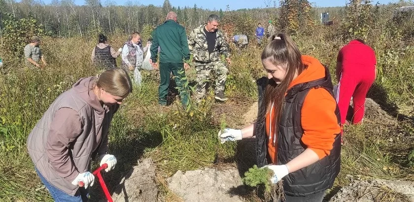 В этот день более 100 волонтеров посадили 6800 елей, что стало символическим подарком волонтёров к 95-летию со дня образования Думиничского района, который жители муниципалитета отметили накануне.