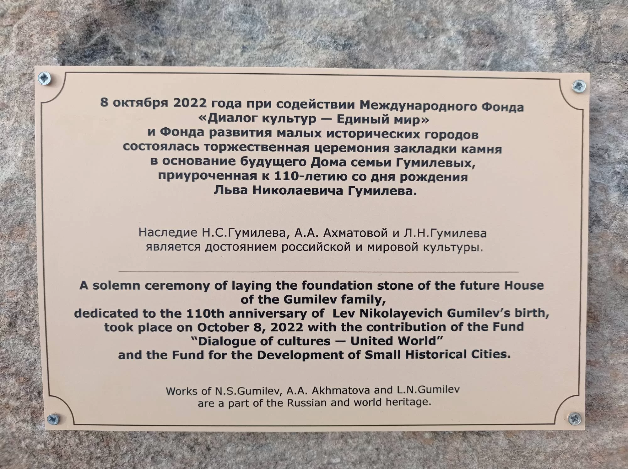В Этномире музей построят рядом с памятником Льву Гумилеву, который был установлен в октябре 2012 года на территории этнодвора «Север, Сибирь и Дальний Восток». Это работа скульптора Алексея Леонова создана мастером в честь 100-летия со дня рождения учёного. По плану музейный комплекс должен принять первых посетителей в 2025 году. В его экспозиции будут представлены произведения Льва Гумилева и его родителей Анны Ахматовой и Николая Гумилева, материалы, связанные с их творческим наследием, сохранившиеся личные вещи семьи, предметы быта.