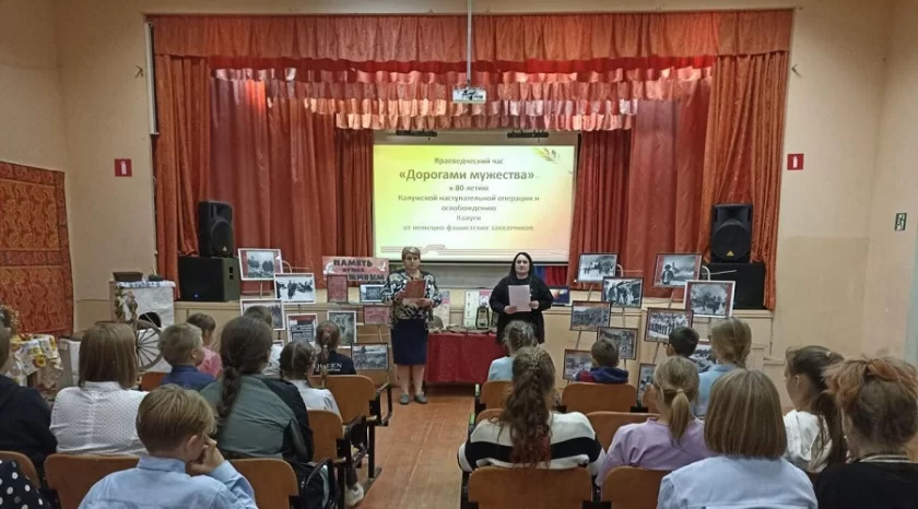 В ДК деревни Бебелево в рамках проекта «Без срока давности» состоялся краеведческий час «Дорогами мужества». Школьникам рассказали о понятиях «геноцид» и «фашизм». Ребята посмотрели презентацию «Калуга в годы войны» и посетили выставку «Память нужна живым». В завершение мероприятия участники получили информационные памятки «Рубежи воинской славы».