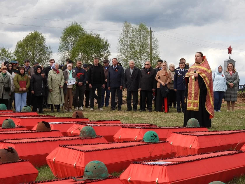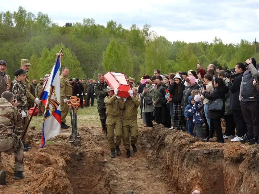 «» «Проведена большая работа по спискам погибших в Износковском районе, со всеми найденными информационными носителями, по установлению имен погибших и поиску родственников», - отметил заместитель руководителя поискового отряда «Прорыв» Антон Качанов.Проводить героев в последний путь приехали родственники из Самарской, Саратовской, Ярославской, Нижегородской, Московской, Амурской областей, республик Мордовия, Удмуртия, Якутия, Коми, Бурятия. По традиции им были переданы медальоны и личные вещи погибших родственников.