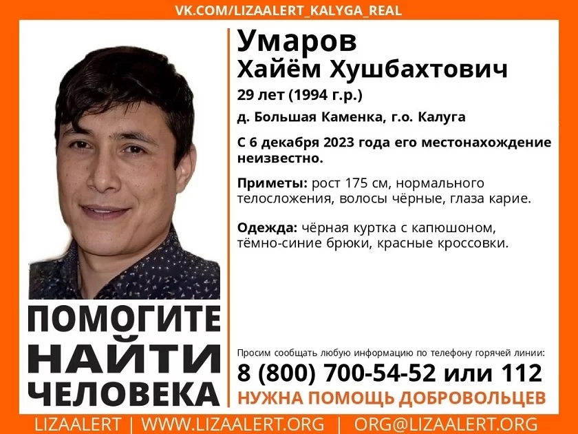 Пропавший ростом 175 сантиметров, нормального телосложения, черноволосый и кареглазый. В последний раз его видели в черной куртке с капюшоном, темно-синих брюках и красных кроссовках.