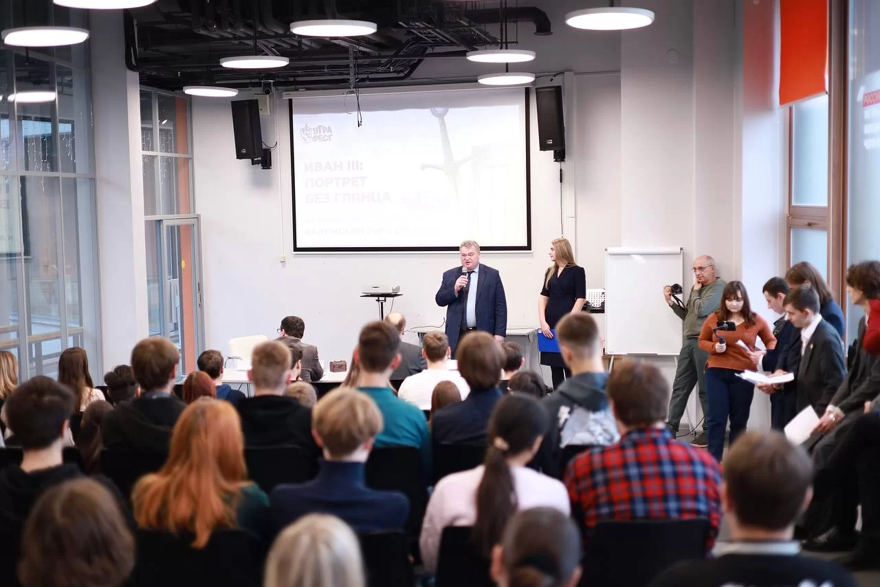 «Хочу поздравить вас с праздником, днём победного окончания Великого стояния на реке Угре. Постепенно «Угра Фест» превращается в великолепный праздник, и я очень рад, что сегодня вы являетесь участниками открывающей фестиваль интеллектуальной битвы. Я думаю, что вы сможете убедительно преподнести свои аргументы, получить удовольствие от дискуссий, и, может быть, сделать какое-то открытие»,- отметил в своём приветственном слове министр внутренней политики Калужской области Олег Калугин.