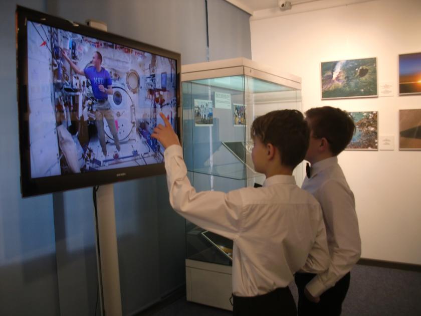 Выставку дополняет документальный фильм, подготовленный студией «Роскосмоса». Исследователи внеземного пространства Сергей Рязанский и Александр Мисуркин ведут уроки с борта МКС, общаются со школьниками, рассказывают о тонкостях работы в космосе и подготовке космонавтов.