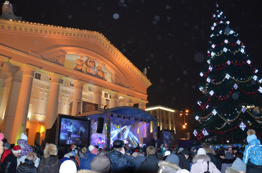 Уже украшены деревья на Театральной площади, в скверах Мира, Ленина, Ветеранов, а также у памятника Чижевскому.