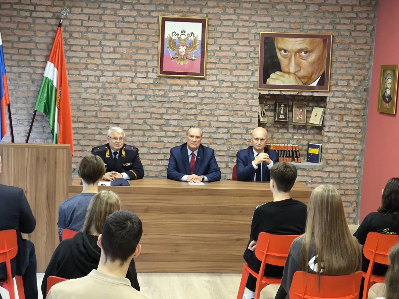 «» «Наша главная задача – это правовое просвещение населения, особенно молодежи. Тех, кто интересуется вопросами государственно-правового строительства в нашей стране, кто хочет в будущем поступать в юридические вузы или получить максимальную информацию о нашем государстве, его истории, законодательстве, органах власти и управления, общественных отношениях. Обо всем, чем живет страна. Мы хотим не столько научить ребят чему-то, сколько пробудить у них интерес к государству, праву, законности», - отметил - доктор юридических наук, председатель Калужского регионального отделения Ассоциации юристов России Алексей Александров.Первое занятие школы юного юриста в Калуге провел начальник УМВД России по Калужской области генерал-майор полиции Сергей Никифоров. Темой его выступления стала борьба с преступностью в России, организация и компетенция органов полиции.