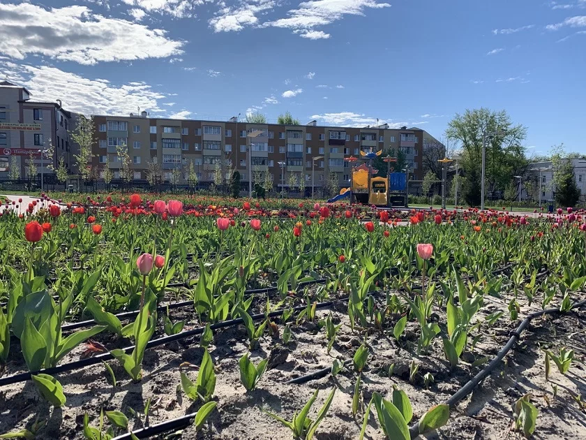Сегодня посадка тюльпанов проходит в сквере Мира, на площади и бульваре Победы, на Воинском мемориальном кладбище.