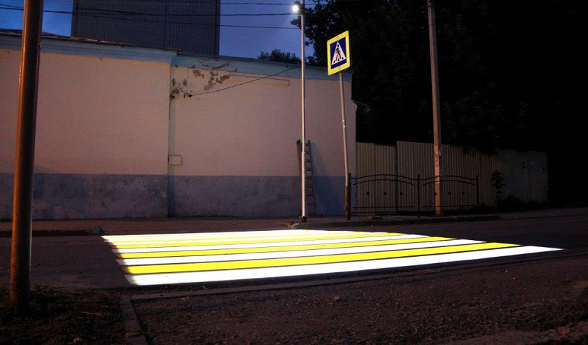 Проекционную разметку легко заметить в темноте, а также во время снега и дождя.