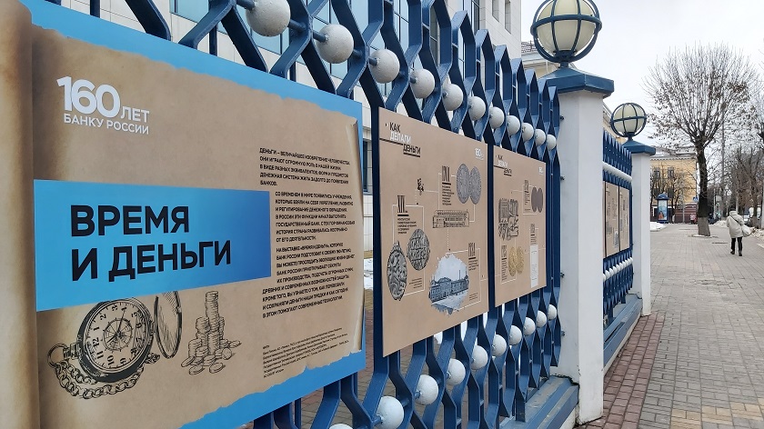Банк России организовал уличную фотовыставку «Время и деньги» в центре Калуги. Она приурочена к его 160-летию.