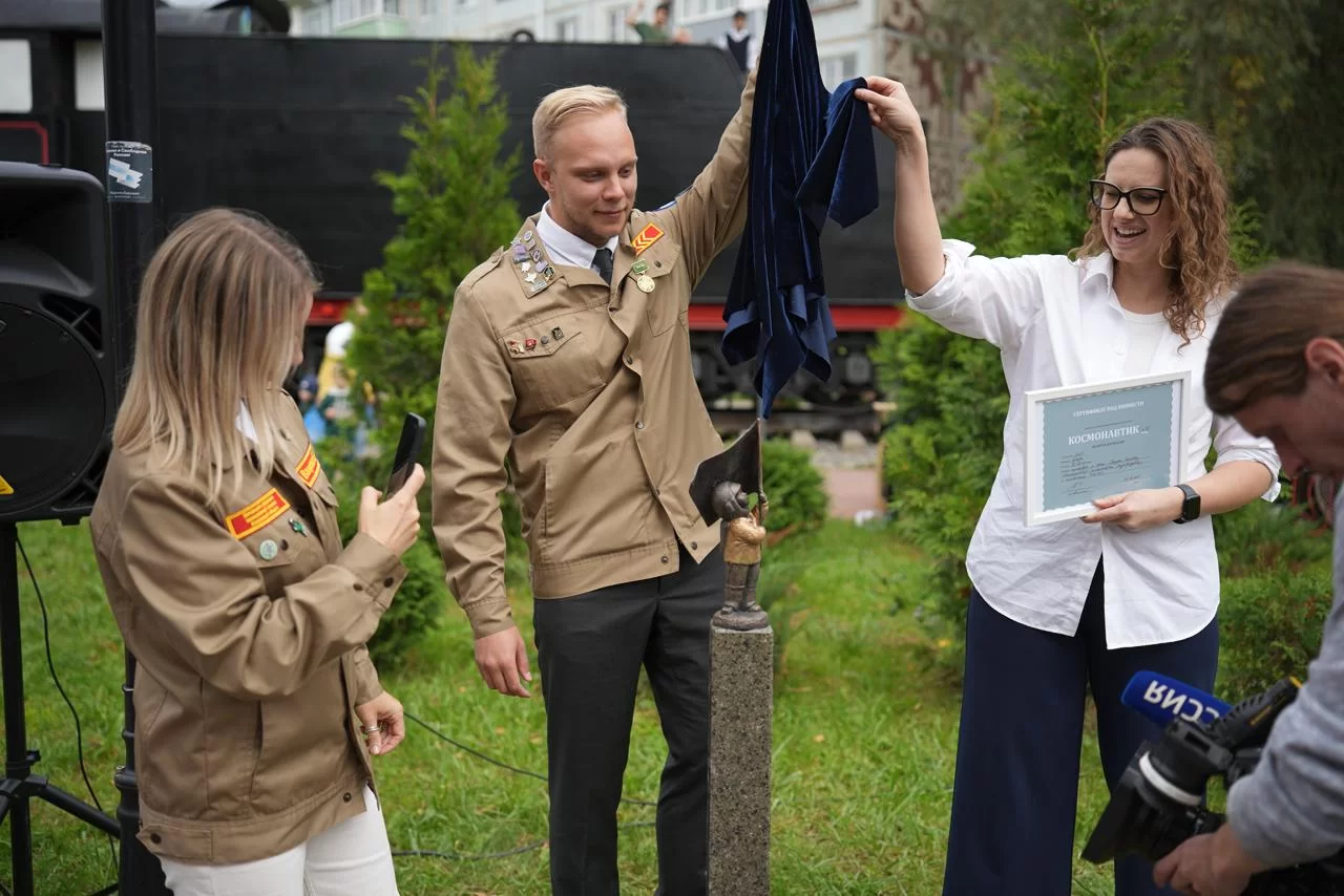 Новую скульптуру сделала скульптор Алина Фарниева. Ее очередная работа посвящена студенческим отрядам.