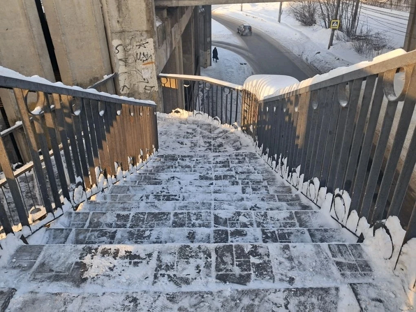 Так, заявитель указал на то, что лестница, ведущая к остановке общественного транспорта «Путепровод», не очищена. Работы по уборке снега произвели в течение дня, сообщают в администрации города.