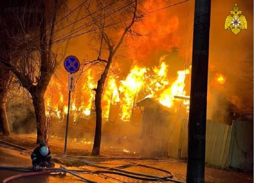 Возгорание жилого дома произошло в Калуге на улице Рылеева. Как видно по фото с места инцидента, огонь поглотил всё здание. Во время пожара пострадал один местный житель.