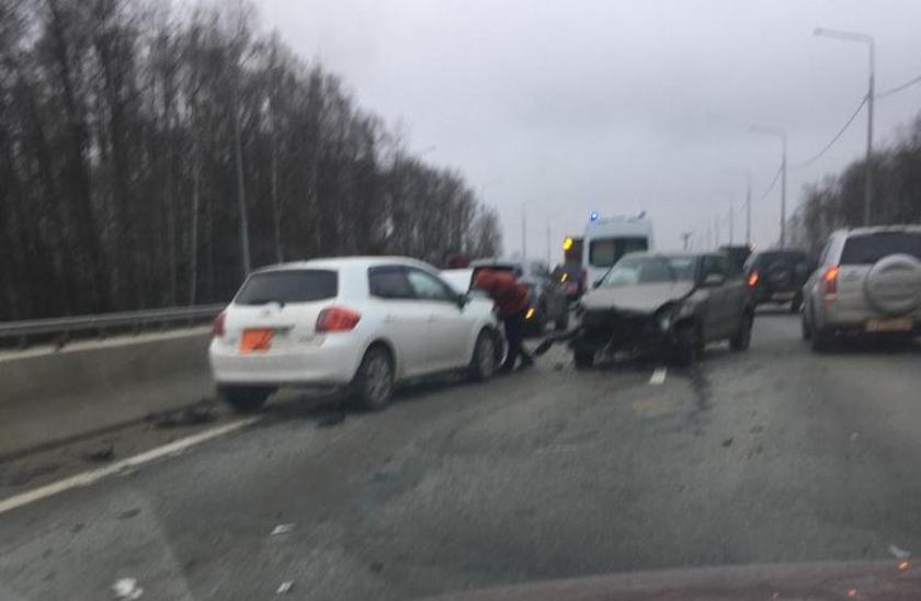 Утром в среду, 17 ноября, на Окружной дороге в Калуге столкнулись четыре легковых автомобиля.