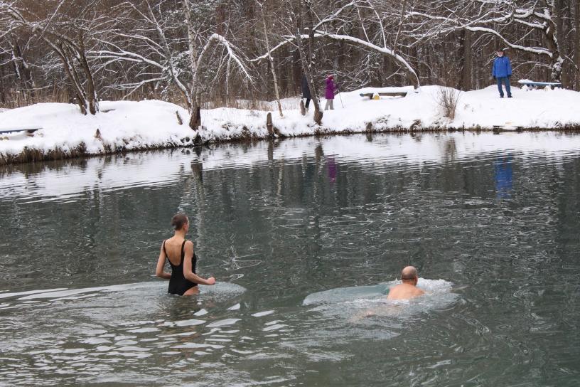 Перед стартом заплыва, любители экстремального купания разминались танцами. После заплыва и награждения все участники дружно отправились в баню.