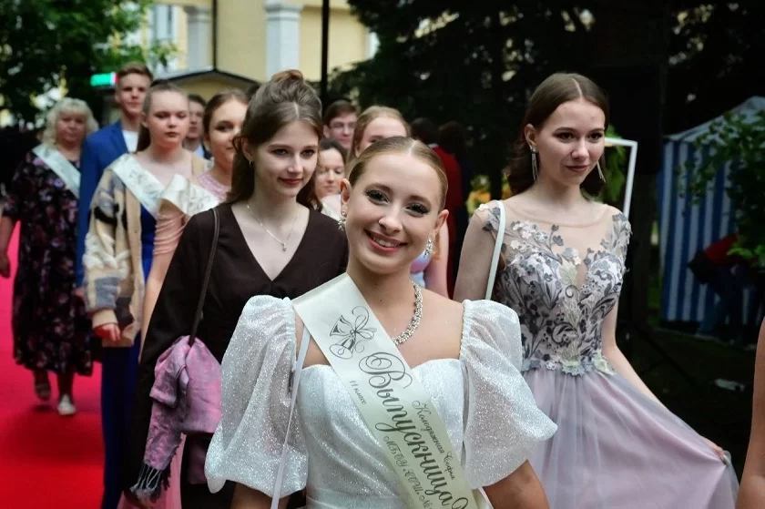 По центральным улицам Калуги прошли выпускники школ и возложили цветы к Вечному огню на площади Победы.