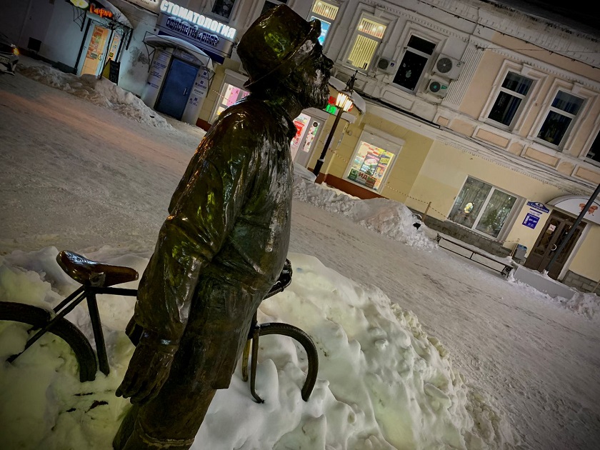 Известную всем калужанам скульптуру ученого Константина Циолковского с велосипедом на пешеходной части Театральной улицы повредили уже третий раз за последние семь месяцев.