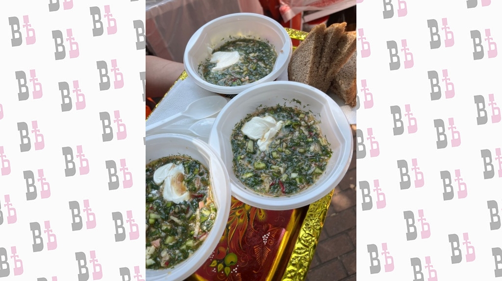 А окрошка-то что надо! На квасе, на кефире, на щавелевом отваре. С секретными ингредиентами: салом, лимоном, свеклой, молочным хреном и горчицей.