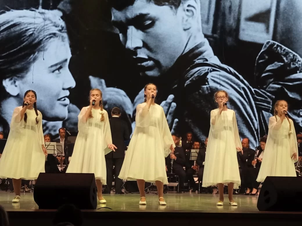 Также он пожелал всем присутствующим здоровья и мирного неба над головой.На большом экране транслировались кадры военной хроники. Воссоздали атмосферу тех дней военные песни, а также современные музыкальные и танцевальные композиции патриотической направленности.