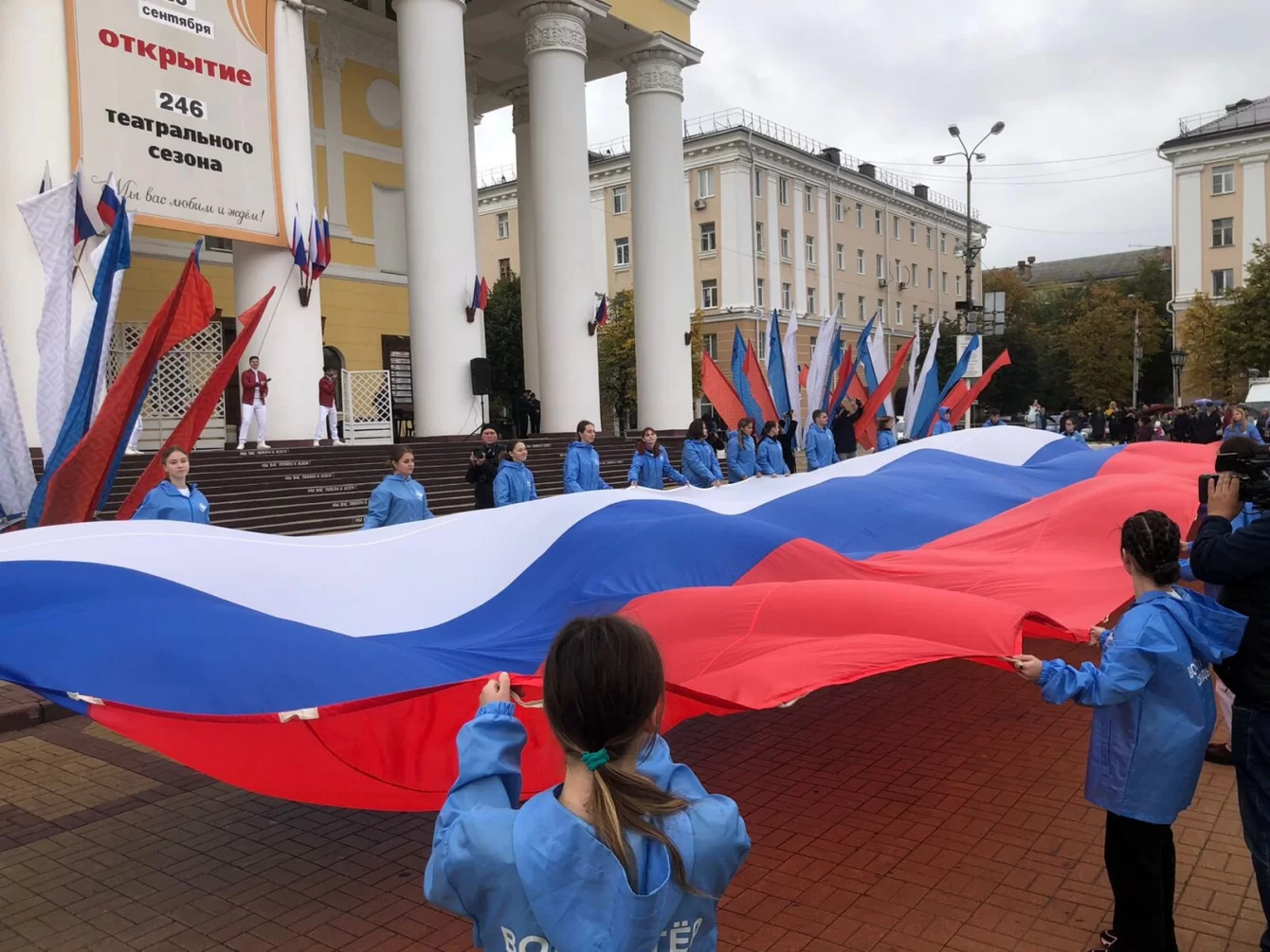 Триколоры украшали небо над главной площадью города. Дух единения поддерживали патриотические песни. В завершении митинга-концерта «Своих не бросаем» был развернут флаг Российской Федерации.