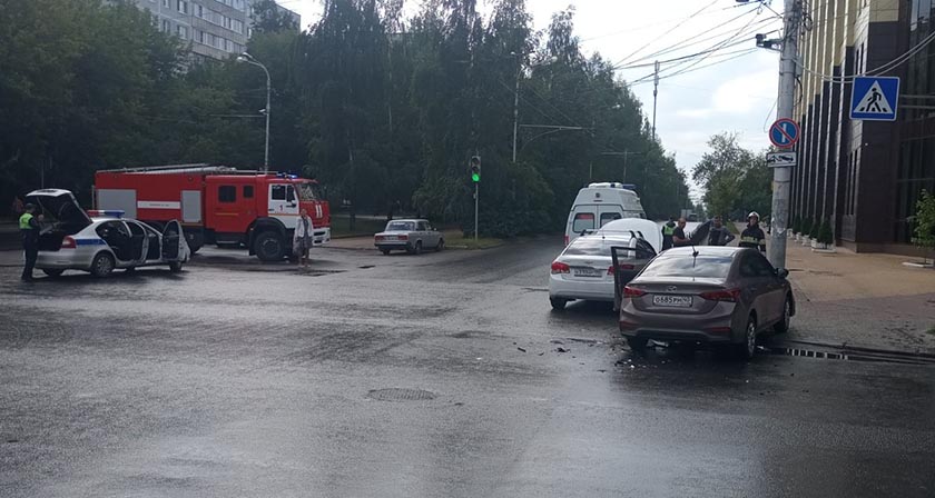 В областном центре в районе 10 утра возле главного здания КГУ им. Циолковского столкнулись легковушки Шевроле и Хендай.