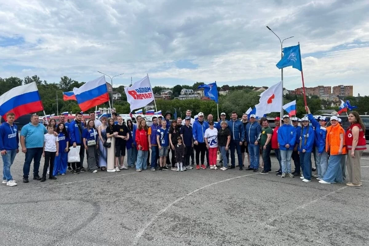 Представители «Единой России», «Молодой Гвардии Единой России», «Волонтеры Победы» и других общественных организаций провезли по городу символ праздника – российский триколор.