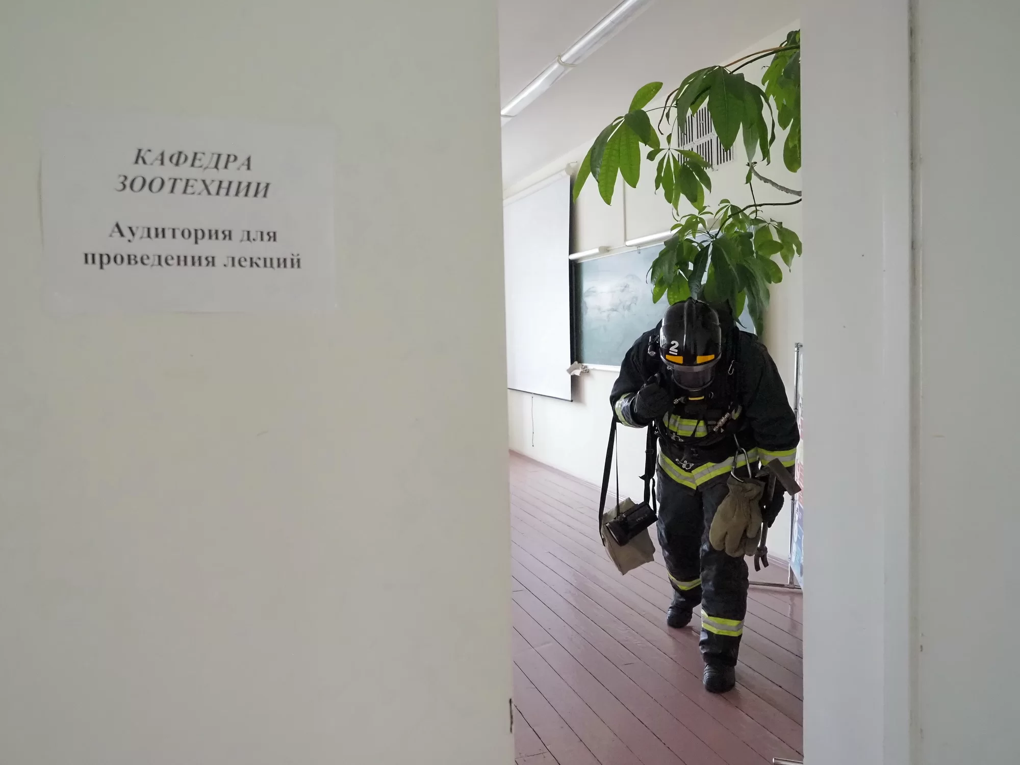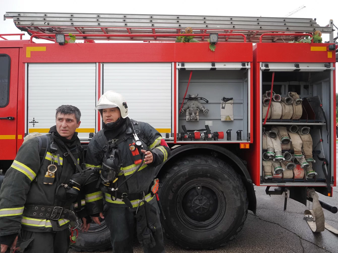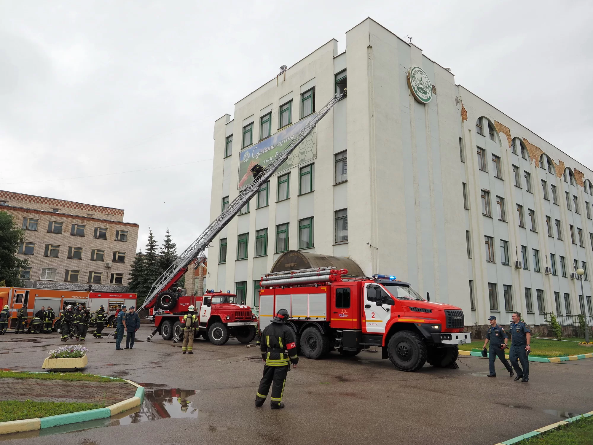В первую очередь надо было спасти людей. И на реальном, и на учебном пожаре эвакуация - один из самых непростых моментов. Часть «пострадавших» выводили по лестничным маршам, надев на них средства для защиты дыхания – специальные капюшоны, которые подключаются к дыхательным аппаратам пожарных, другие спускались по автолестнице. От момента поступления звонка до полной ликвидации пожара прошло чуть более получаса.
