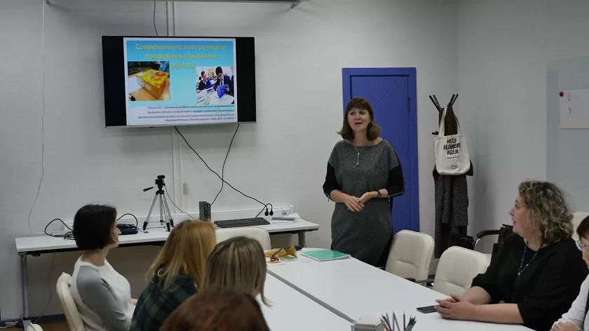 В частности, Ольга рассказала об уникальном игровом комплекте «Мир профессий будущего», разработанном на основе материалов регионального Атласа новых профессий. Этот игровой комплект в настоящее время широко тиражируется в школах региона и помогает детям лучше понять себя, почувствовать, какие занятия и предметы им ближе, а значит, уже в школьные годы научиться делать свои первые шаги к профессии.