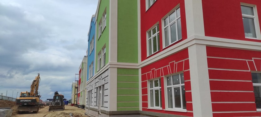 По информации ведомства, практически на сто процентов выполнено устройство наружных инженерных сетей, проведены кровельные работы и отштукатурены стены. Детские площадки и внутренние инженерные сети готовы на 70%, фасад – на 85%. Финишная отделка помещений находится на этапе 30%. Полностью готова стяжка пола.