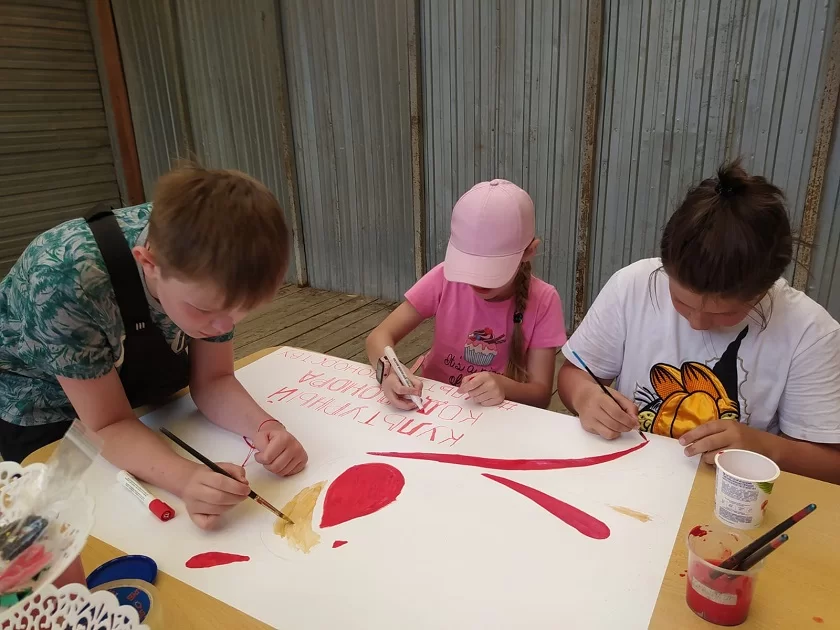Вместе со своим педагогом худруком центра Светланой Шишкиной дети, пребывающие на летней площадке, нарисовали плакат, символизирующий культурный код донора жар-птицу — персонаж русских народных сказок. Грудка жар-птицы выполнена в форме капельки крови. Дети узнали, кто такие доноры и зачем нужно сдавать кровь. Вместе со своим руководителем они также оформили информационный стенд по донорству для взрослых посетителей центра.
