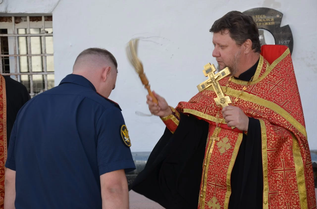 По благословению Митрополита Калужского и Боровского Климента молебен по священномученику Августину Калужскому и освящение памятной доски провел руководитель отдела Калужской епархии по взаимодействию с учреждениями УФСИН протоиерей Василий (Гаднай).