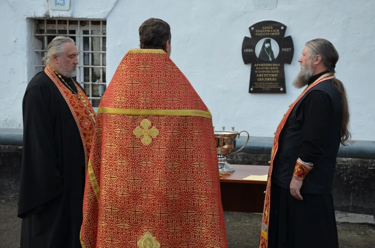 «В конце июля в Москве состоялось заседание Священного синода Русской православной церкви под председательством Патриарха Московского и всея Руси Кирилла, на котором было установлено новое празднование для церковного календаря – Собор калужских святых. В этом списке более 60 имен. Один из них – это святой священномученик Августин, Архиепископ Калужский и Боровский. Он был репрессирован в 1937 году и содержался здесь под стражей. Поэтому мы и установили на этом месте памятную доску в его честь»,